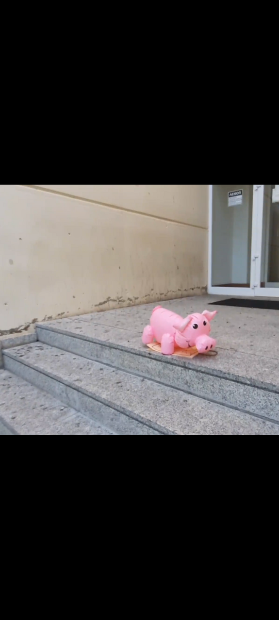 Inflate and explode inflatable pig