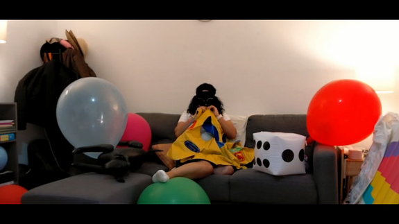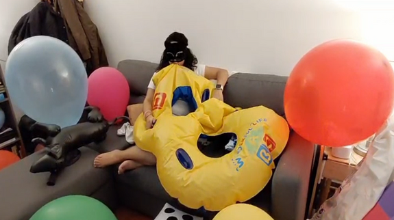 Ary blow by mouth a big new inflatable that we bought from temmu haha