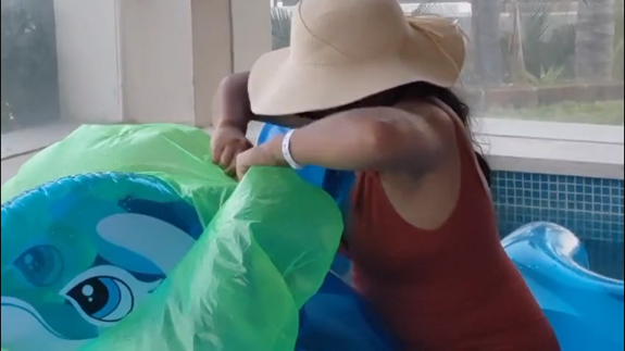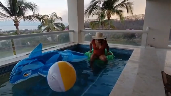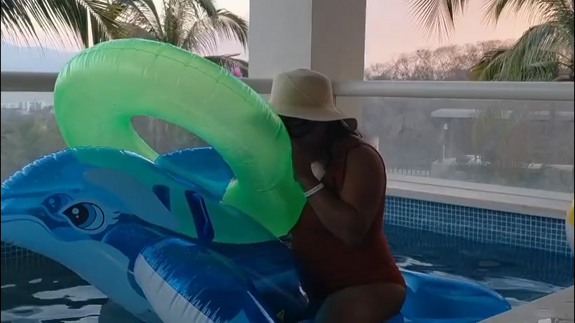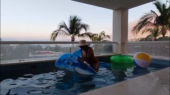 This is a sexy video of me playing in a private pool with my inflatables, whale, beachball and swimming ring... the whale and the beachball live... the swimming ring... not.. hehe