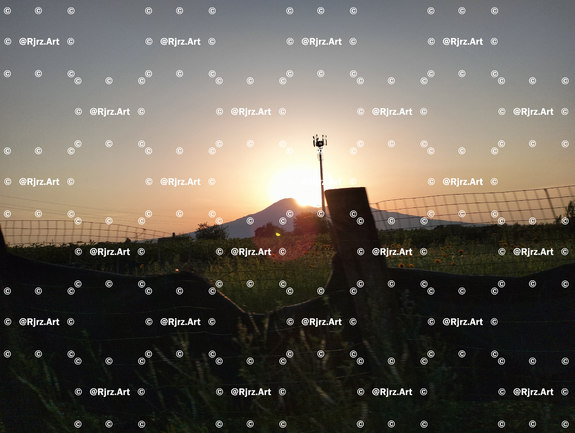 Vesuvio con alone e tramonto nei campi di girasoli.