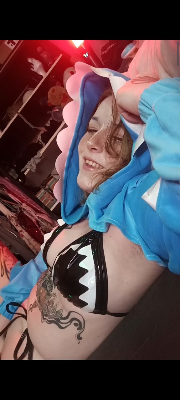 bed, rocking some adorable shark lingerie, and she’s ready to have some