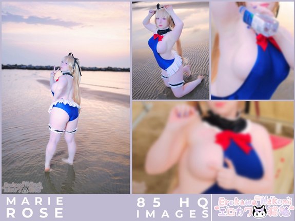 In total this set contains 85 HQ images, from some nice posing at the beach to the usual fan service you can expect from me. Highlights include exposing my breasts in this swimsuit, both while at the beach and while sitting in the middle of dozens of beach loungers. I am obviously always hiding the most important part, but I've gotten pretty creative with that. Personally, I think the best shot is me exposed on one side, pouring water over my breasts so that you can almost see everything!