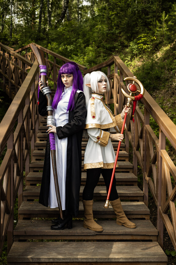Тихий ритуал среди забытых руин. Фрирен — вечная свидетельница ухода, Ферн — её преданная тень. Магия, что не воскрешает, но дарит умиротворение. Прощание, окрашенное нежностью и лунным светом.