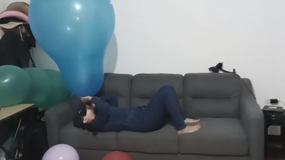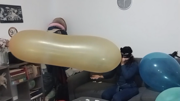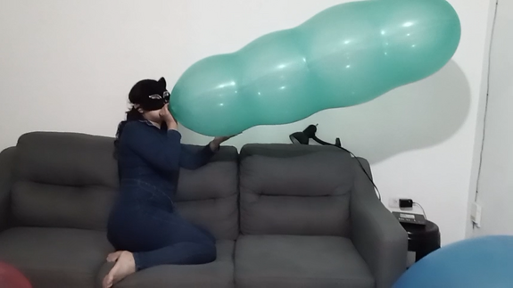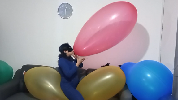 Alice take some big balloons (4 roomtex) and one gl cattex... half blow them in the start of the video, and mouth blow it really big !!!
