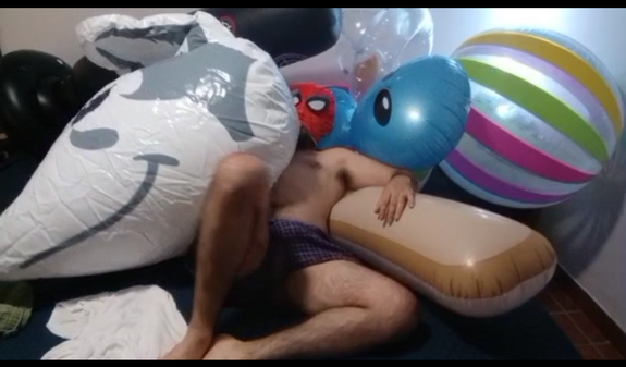 As the title said.. 59 minutes of mouth Blow 8 inflatables ... Beachball , small duck, box tube, ice cream, alien, head of a wolf, swimming ring and air Mattress :)