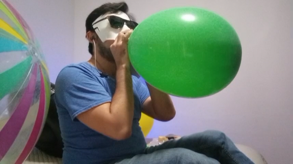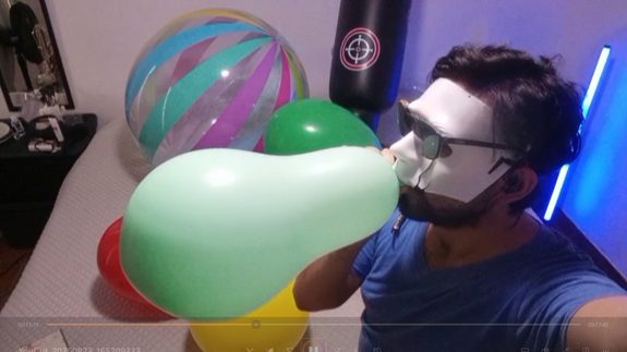 i blow balloons for 28.59 minutes.. are like 18 balloons... many sizes... non pop :)
