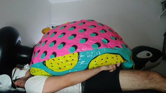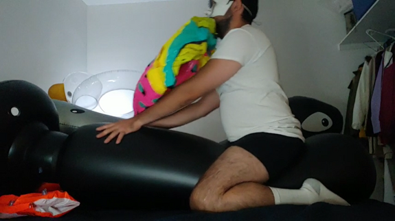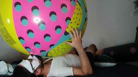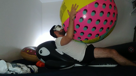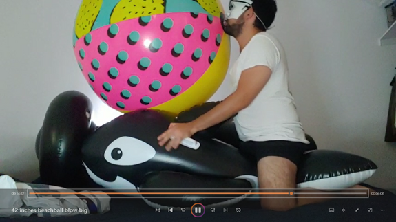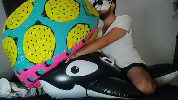 I blow by mouth a big 42 inches really tight!! while i was riding and f@cking my inflatable whale and inflatable box bag!!