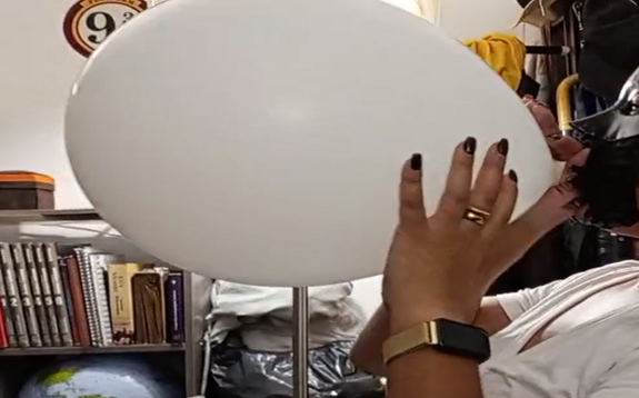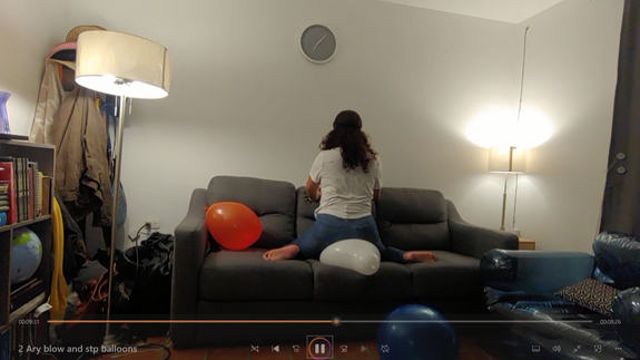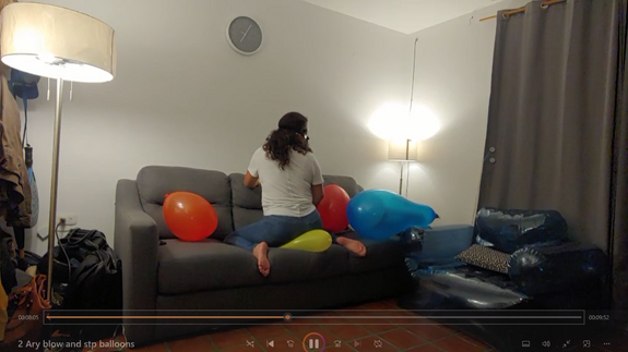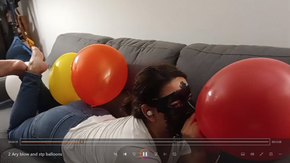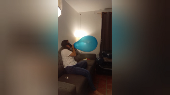 Ary blow by mouth 5 balloons...4 of 16 inches and one of 24 inches, then ridem one by one until pop them all !!!
