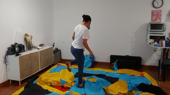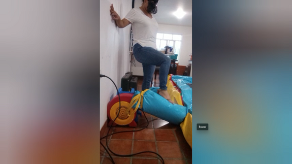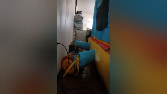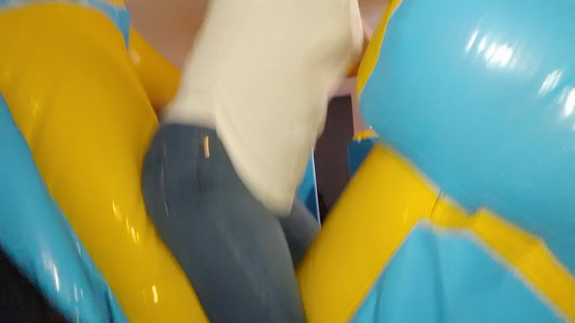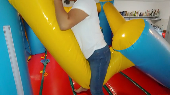 Ary jump really hard in the big inflatable castle, also she play with her feets getting ready close them to the camera