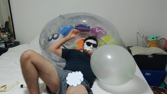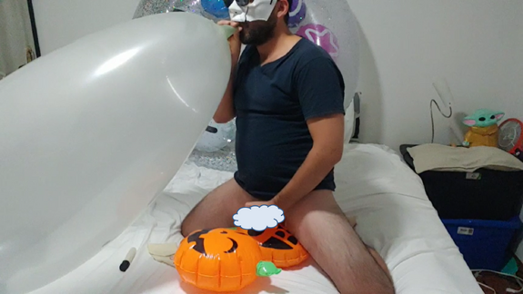 In this time i take a big r@mtex balloon and start blowing up.. i get really h@rny so i m@sturbate myself all the video, i play also a few with a d@ldo and blow more and more the big balloon!!