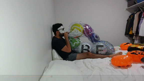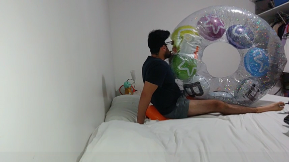 I take the biggest clear inflatable ring that i had and blow it up by mouth!!