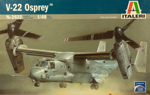 This book contains detailed instructions on building the V-22 Osprey 1/48 scale model aircraft from Italeri (Kit 2622).