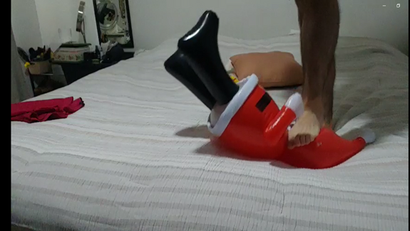 Popping inflatable santa by feets