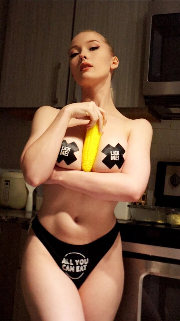 2 minutes & 37 second VIDEO of boob groping, legs spreading, sucking down creamy deviled eggs, implied boob job on a corn dildo, AND a blow job on the corn dildo! Enjoy, and Happy Holidays! ;)