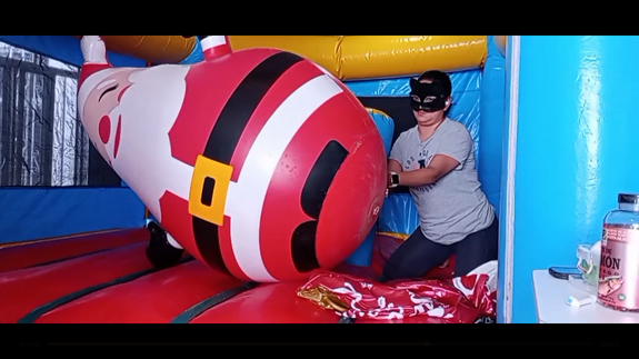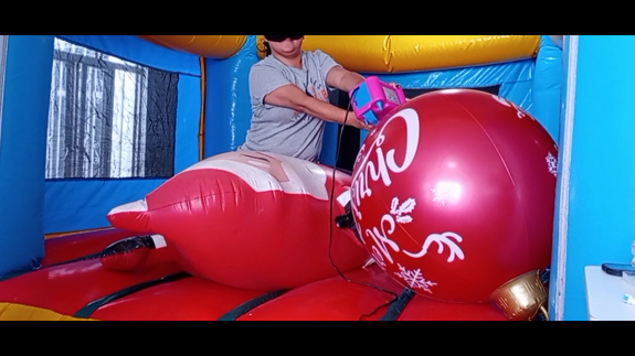 After that she over inflate a big santa really big one... but does not pop...will do it next time!!!