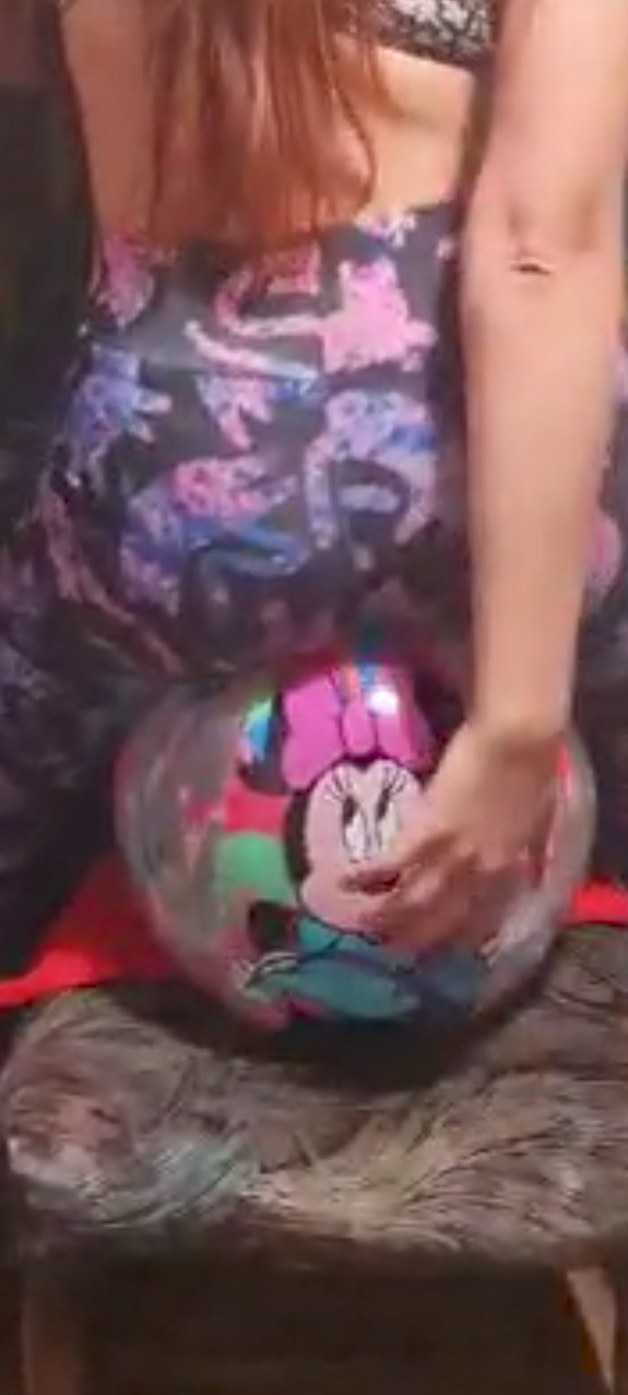 Sexy girl returns with more Mickey and Minnie Mouse balls to pop under her ass