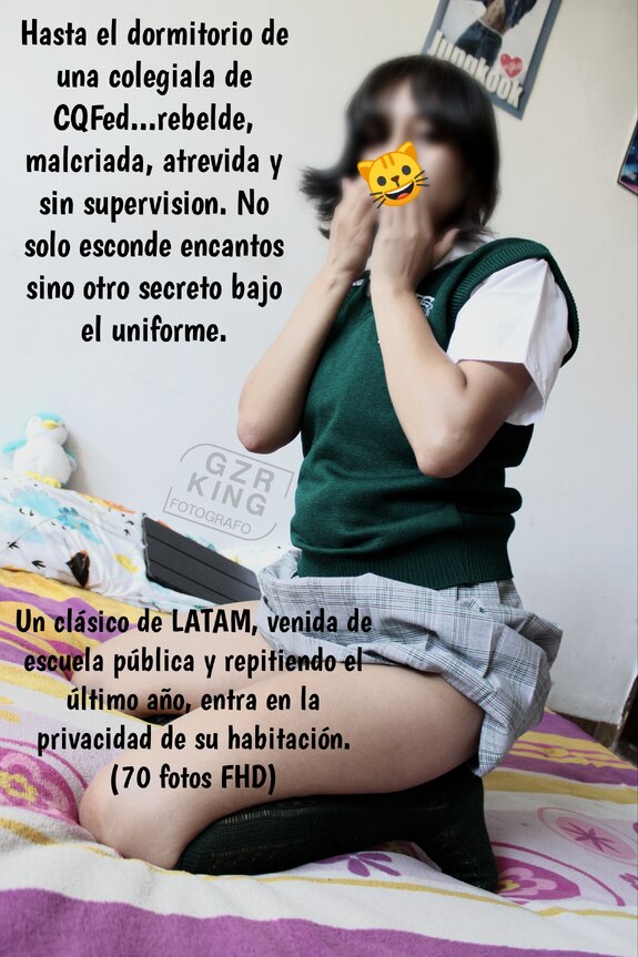 Hasta el dormitorio de una colegiala - repitiendo último año en CQFed, rebelde, malcriada, atrevida y sin supervision. No solo esconde encantos sino un secreto bajo ese uniforme...un clásico de LATAM. (70 fotos FHD)
