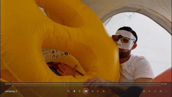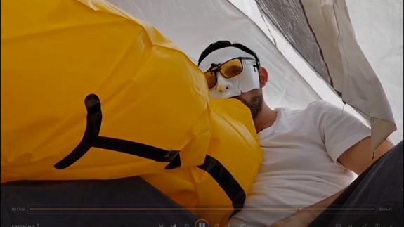 I blow by mouth a big yellow inflatable insite the camping tent hehe