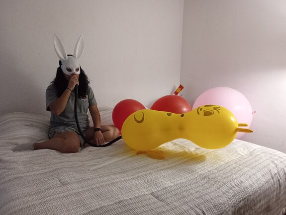 Ary mouth blow a big cattex caterpillar balloon!!!
