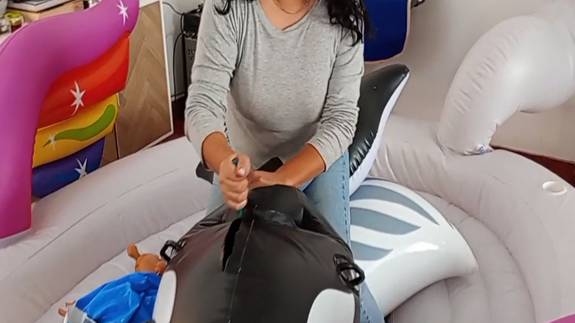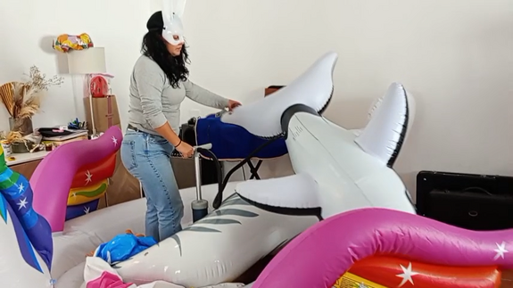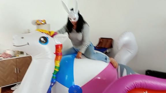 Also ride the whale and after that start popping by knife the whale and the head and wings of the big unicorn the body is safe.. by now...