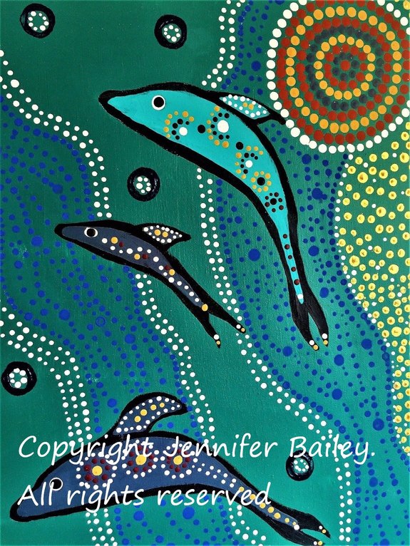 In Aboriginal culture, dolphins are commonly associated with the human spirit. They are also used to symbolize the importance of a balanced life.