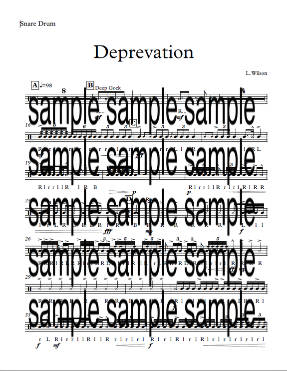 Includes the sheet music for the Marching Snare Drums part of Dream Sequence